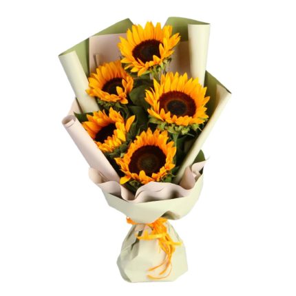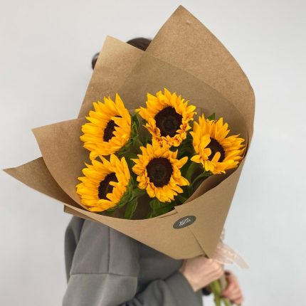 Букет-комплимент с подсолнухом, колосьями ( триникум), альстромерией , солидагой и зеленью
