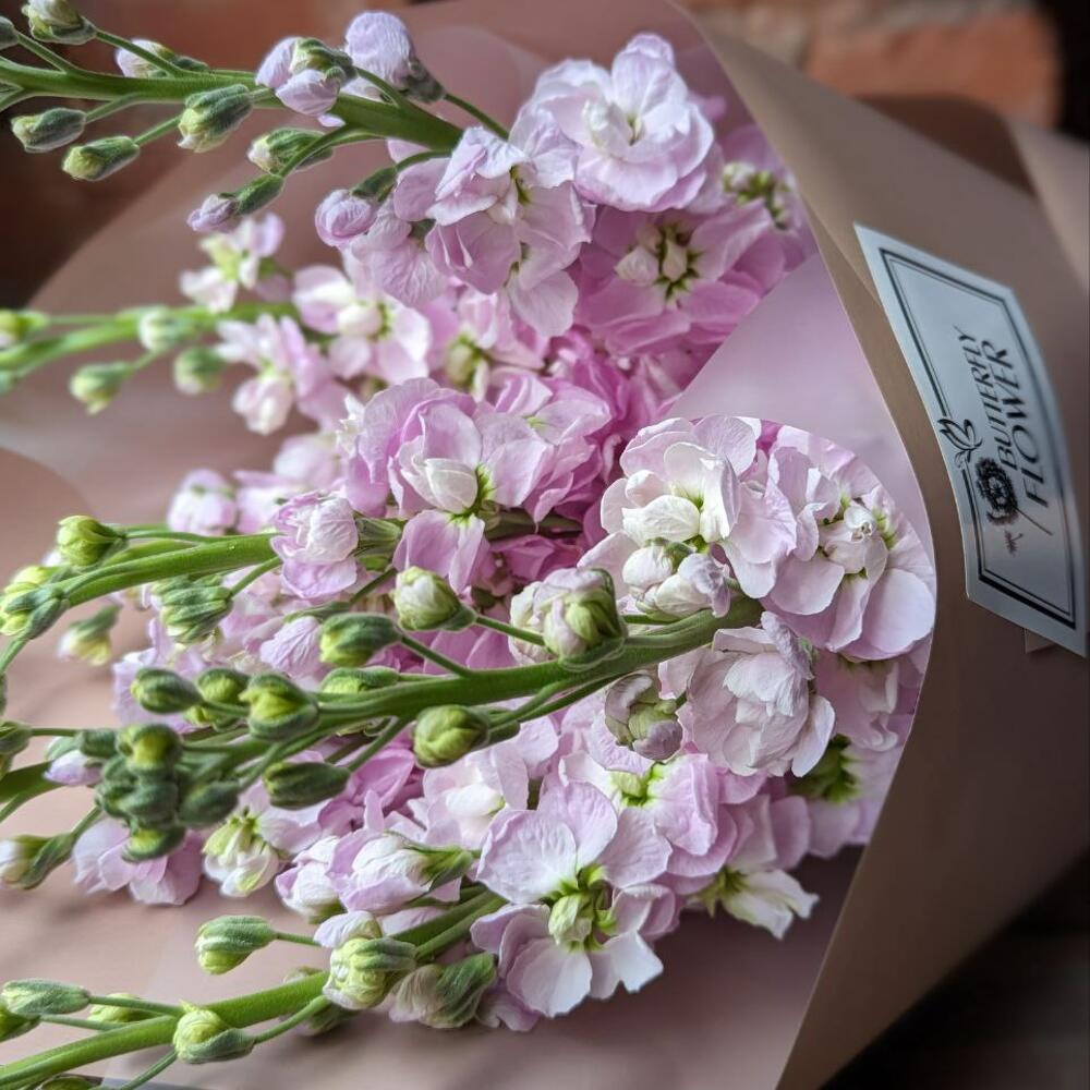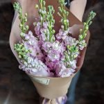 Букет из 7 нежно-розовых маттиол в стильной упаковке “Матиз”