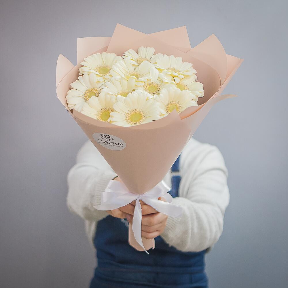 Букет из 11 белых кустовых хризантем Сантини с зеленью
