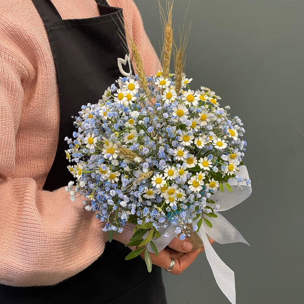 Упаковка дизайнерская – 1 шт.Гипсофила – 2 шт.Матрикария – 3 шт.Пшеница – 5 шт.Стакан – 1 шт.Фисташка – 1 шт.