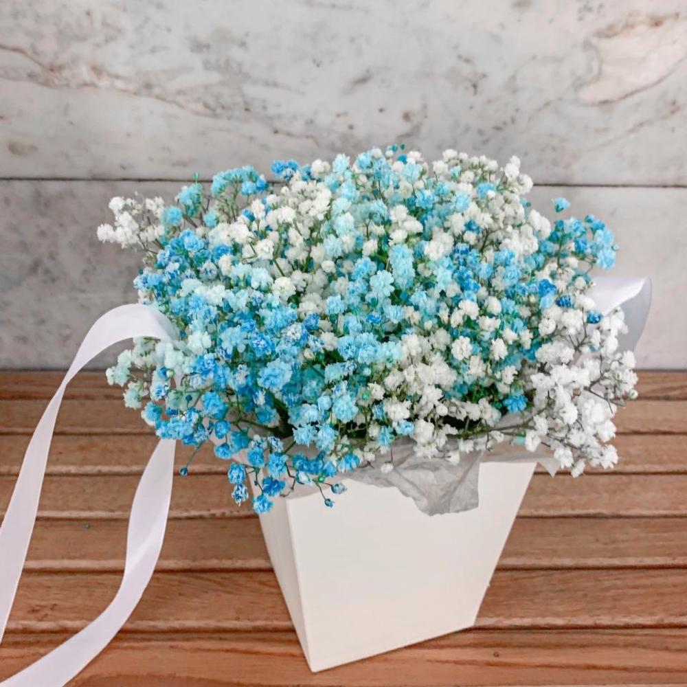 Гипсофила – 5 шт.Сумочка с ручками из плотного картона ламинированого – 1 шт.Губка флористическая – 1 шт.
