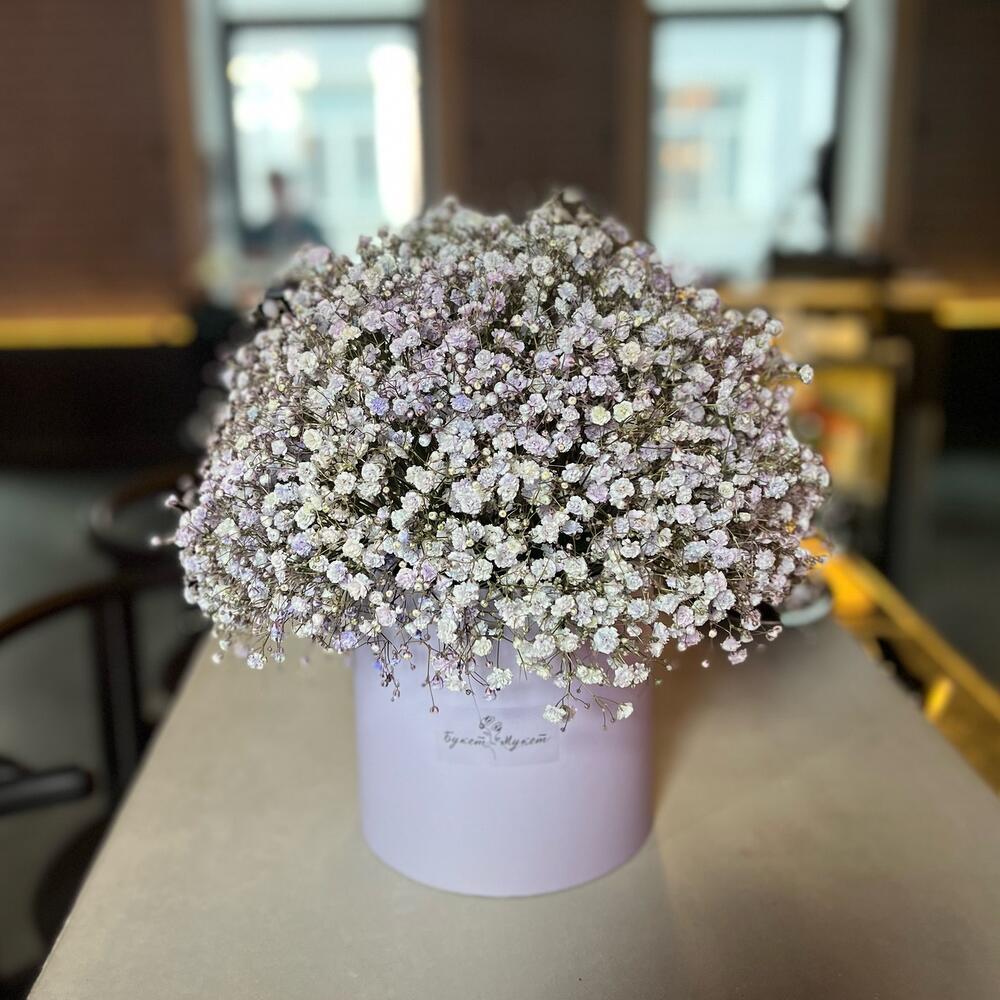 Гипсофила – 7 шт.Коробка шляпная – 1 шт.Оазис флористический – 1 шт.