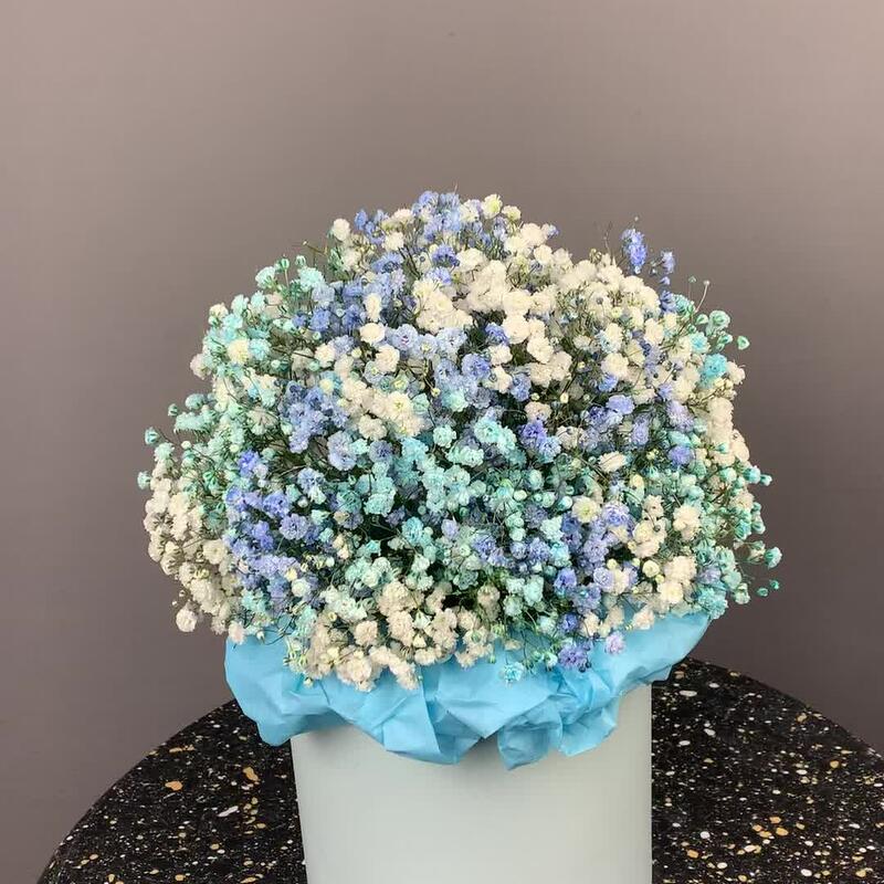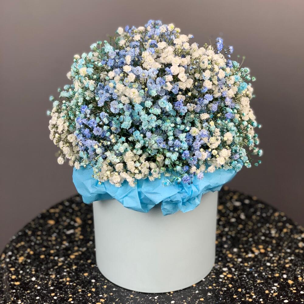 Голубая гипсофила в шляпной коробке М