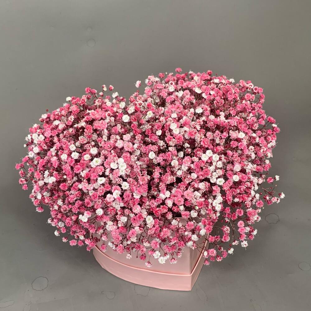Гипсофила – 7 шт.Коробка сердце – 1 шт.