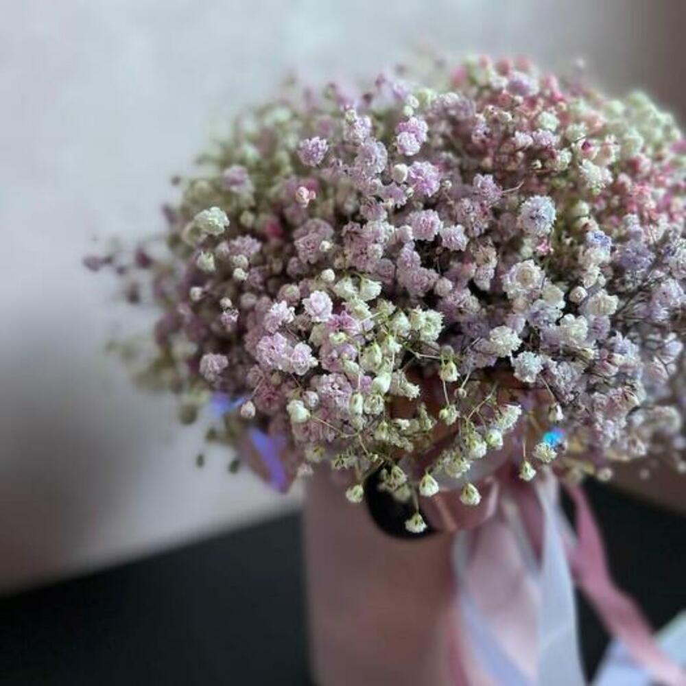 Гипсофила – 7 шт.коробочка – 1 шт.Атласная лента – 1 шт.