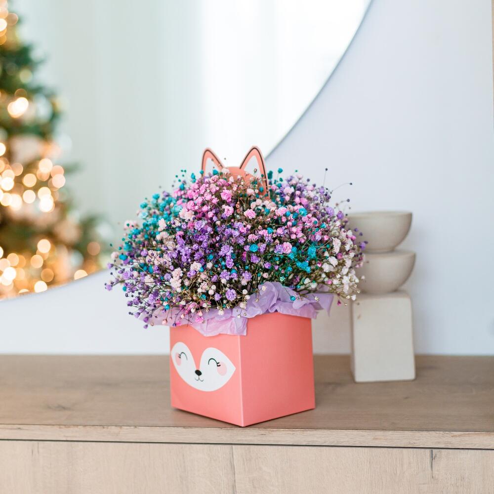 Гипсофила – 5 шт.коробка лисичка – 1 шт.Оазис флористический – 1 шт.Тишью – 4 шт.