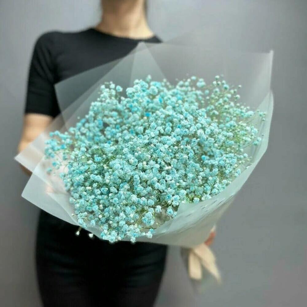 Гипсофила голубая – 5 шт.Пленка – 1 шт.Лента – 1 шт.