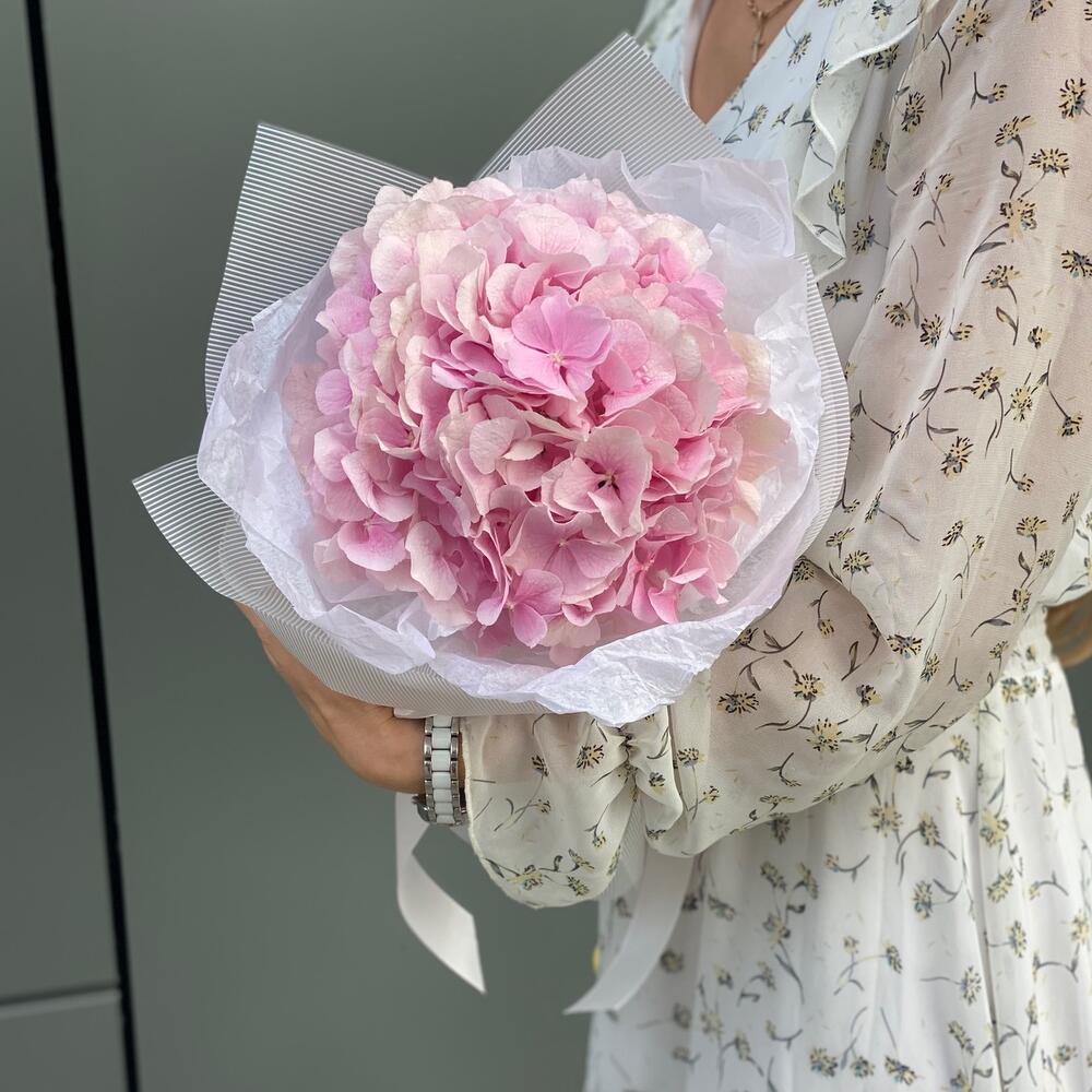 Букет из одной ветки нежно розовой гортензии в оформлении!