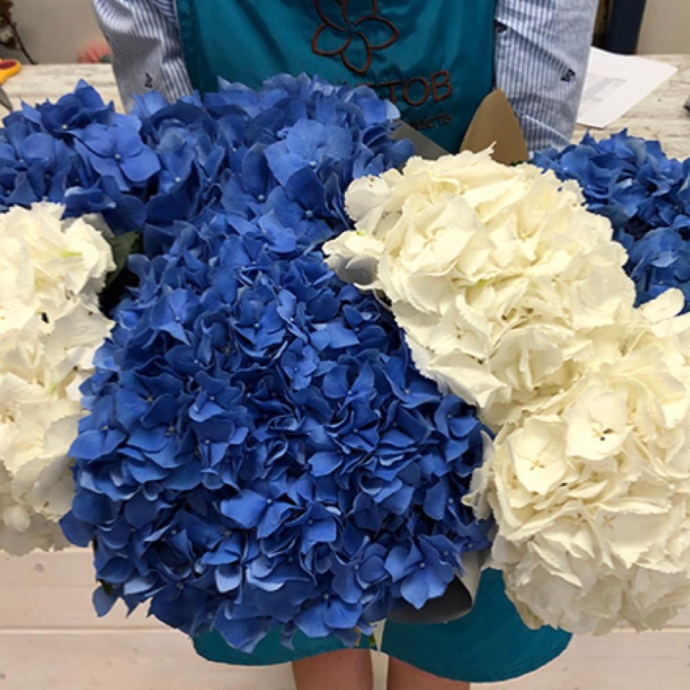 Букет из 7 сине-белых гортензий