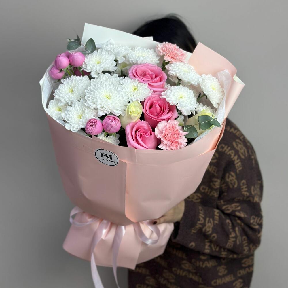 Гвоздики, Кустовые розы, Пионовидные розы, Розы