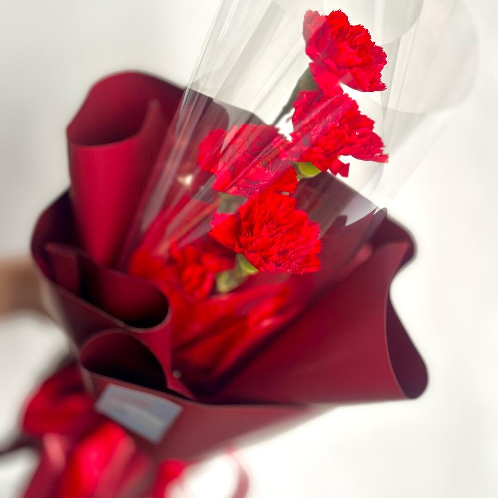 Гвоздика – 5 шт.Открытка – 1 шт.Упаковка дизайнерская – 1 шт.