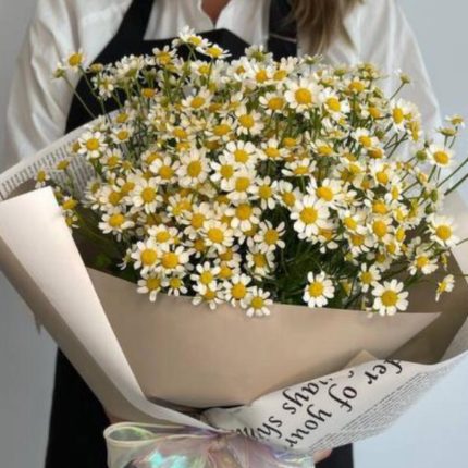 Букет из ромашек и персиковых диантусов “Ваниль”