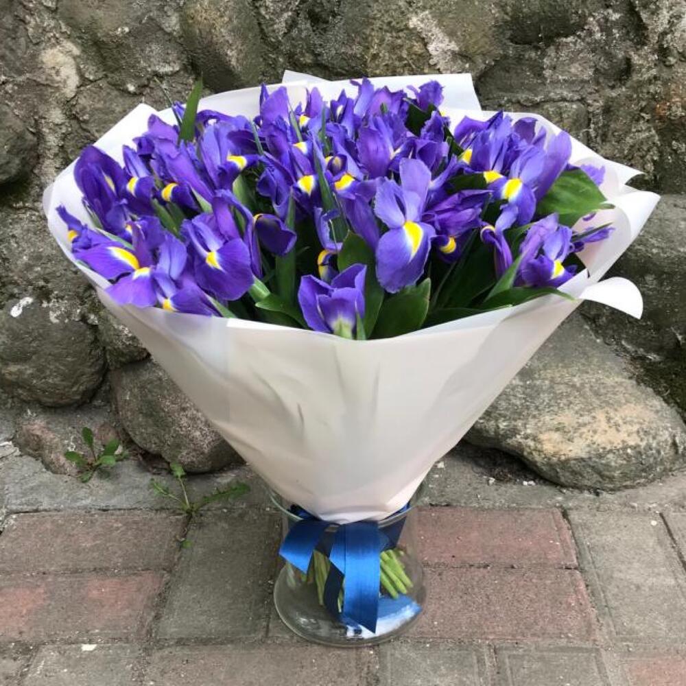 Лента атласная – 1 шт.Фисташка – 5 шт.Упаковка дизайнерская – 2 шт.Ирис Blue Magic – 51 шт.