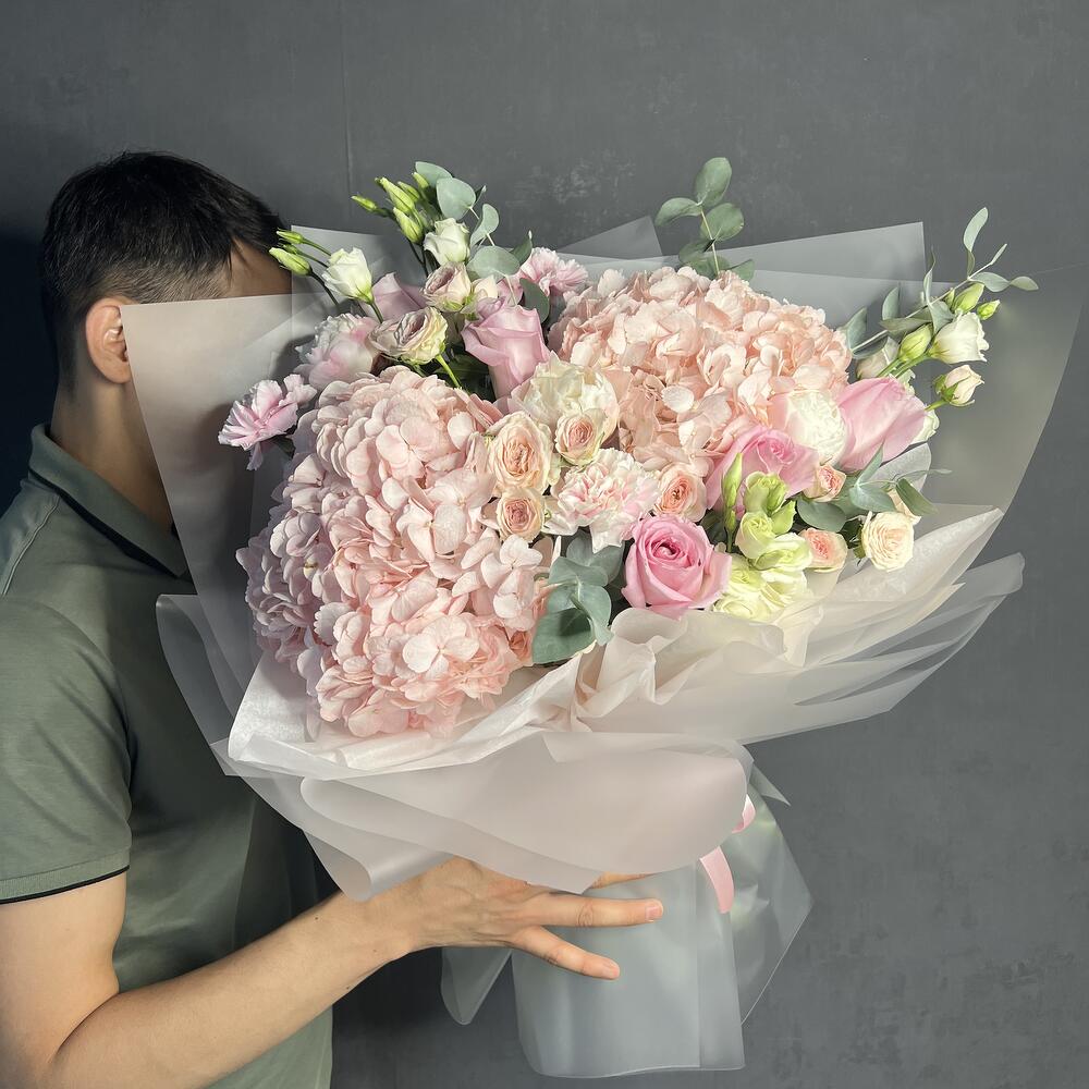 Гвоздики, Кустовые розы, Лизиантусы, Пионовидные розы, Розы