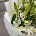 Букет из 9 белых лилий в дизайнерской упаковке “Ливерпуль”