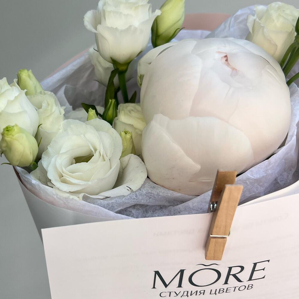 “Сиреневый туман” – композиция из гипсофилы в шляпной коробке