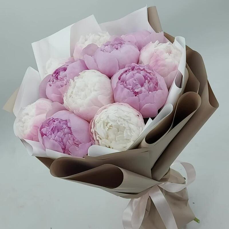 Упаковка дизайнерская – 1 шт.Пион премиум – 11 шт.Лента атласная – 1 шт.