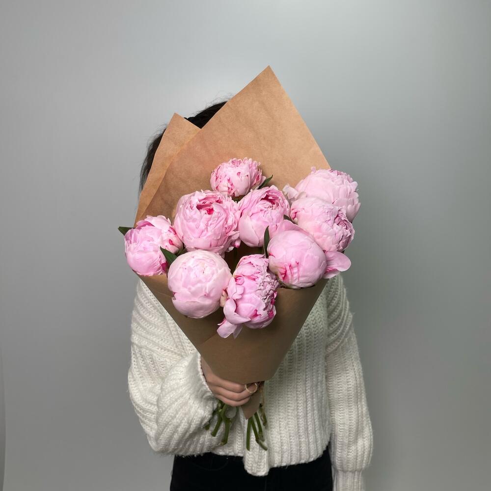 9 розовых пионов