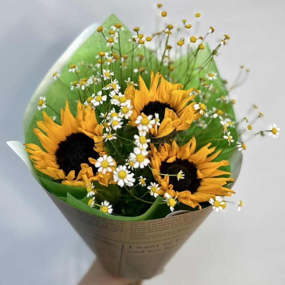Подсолнух – 3 шт.Матрикария – 3 шт.Оформление – 1 шт.