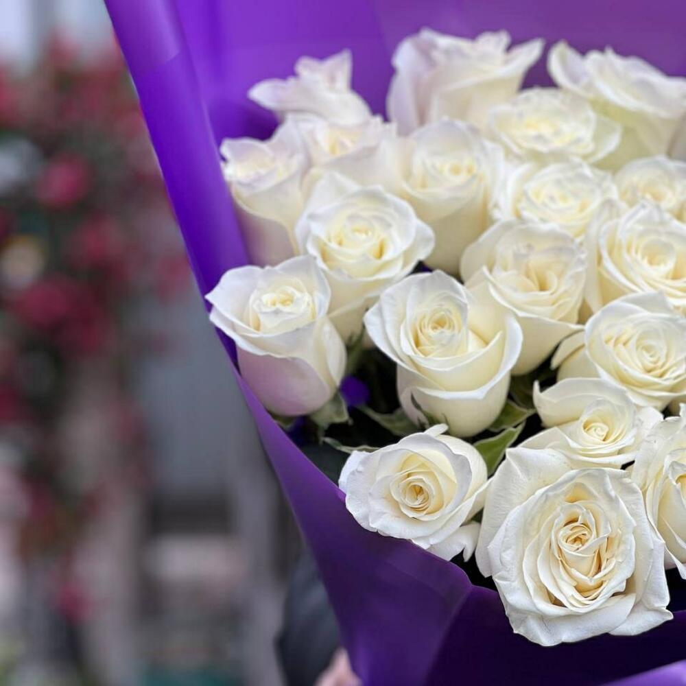 Нежный букет из белоснежных ароматных голландских роз станет замечательным подарком для ваших родных и близких