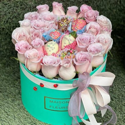 Композиция из голландских роз с вкуснейшей клубникой в шоколаде
