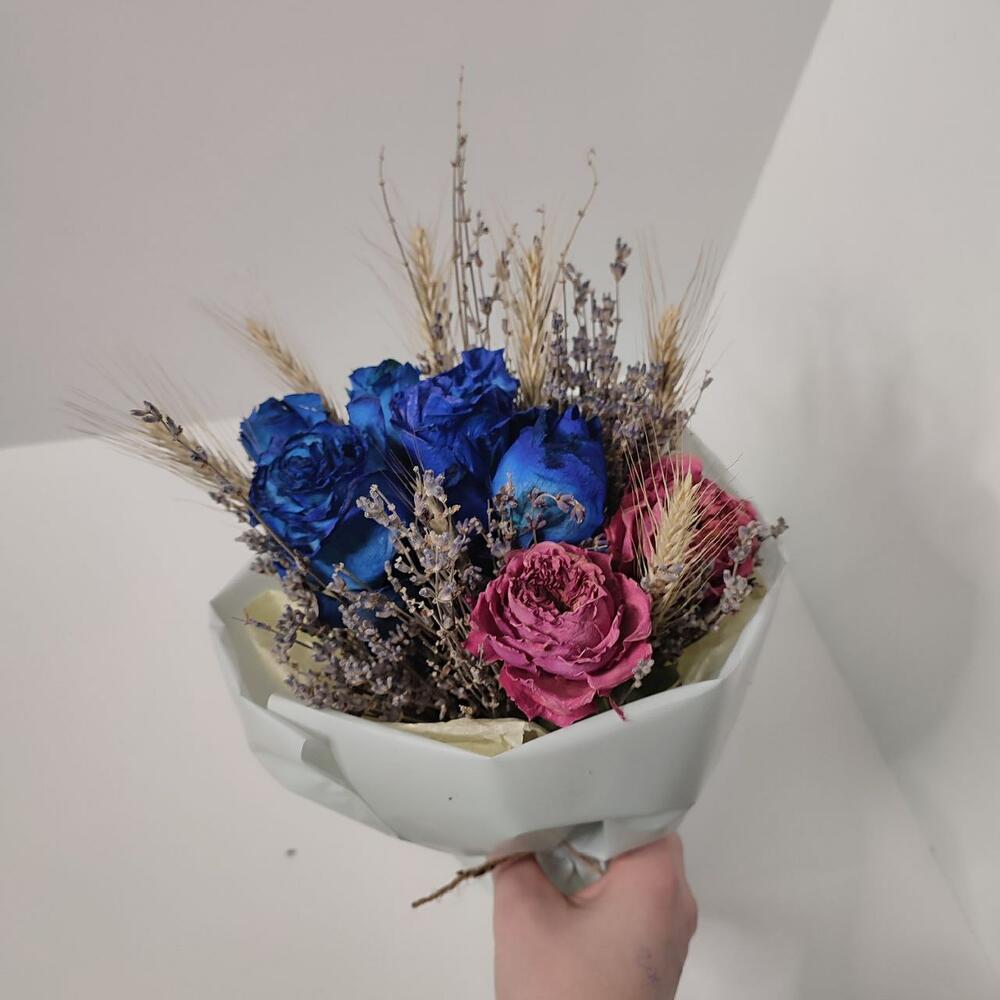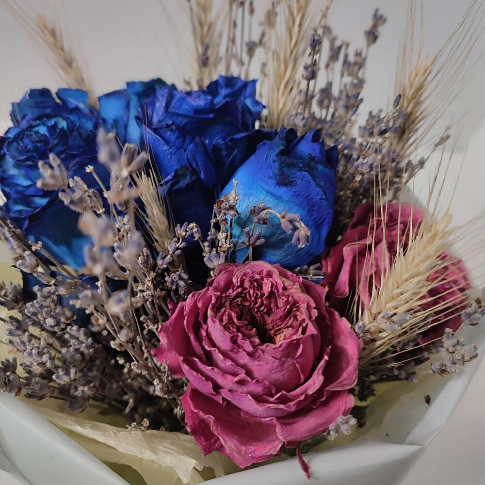Роза сухоцвет – 7 шт.Лаванда пучок – 1 шт.Рожь – 7 шт.