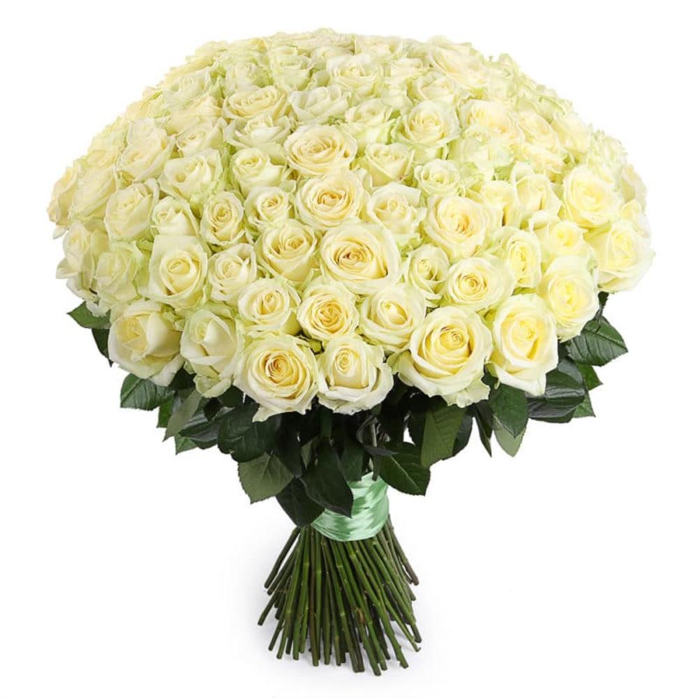 Атласная лента – 1 шт.Роза белая 60 см – 101 шт.