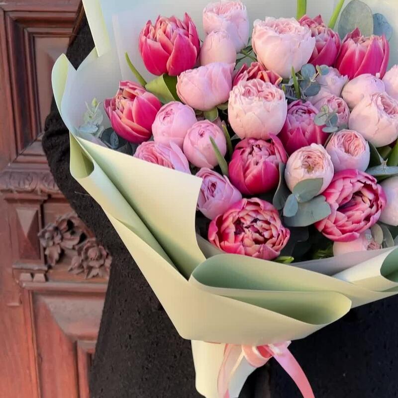 Категории: Пионовидные розы, Розы, Тюльпаны