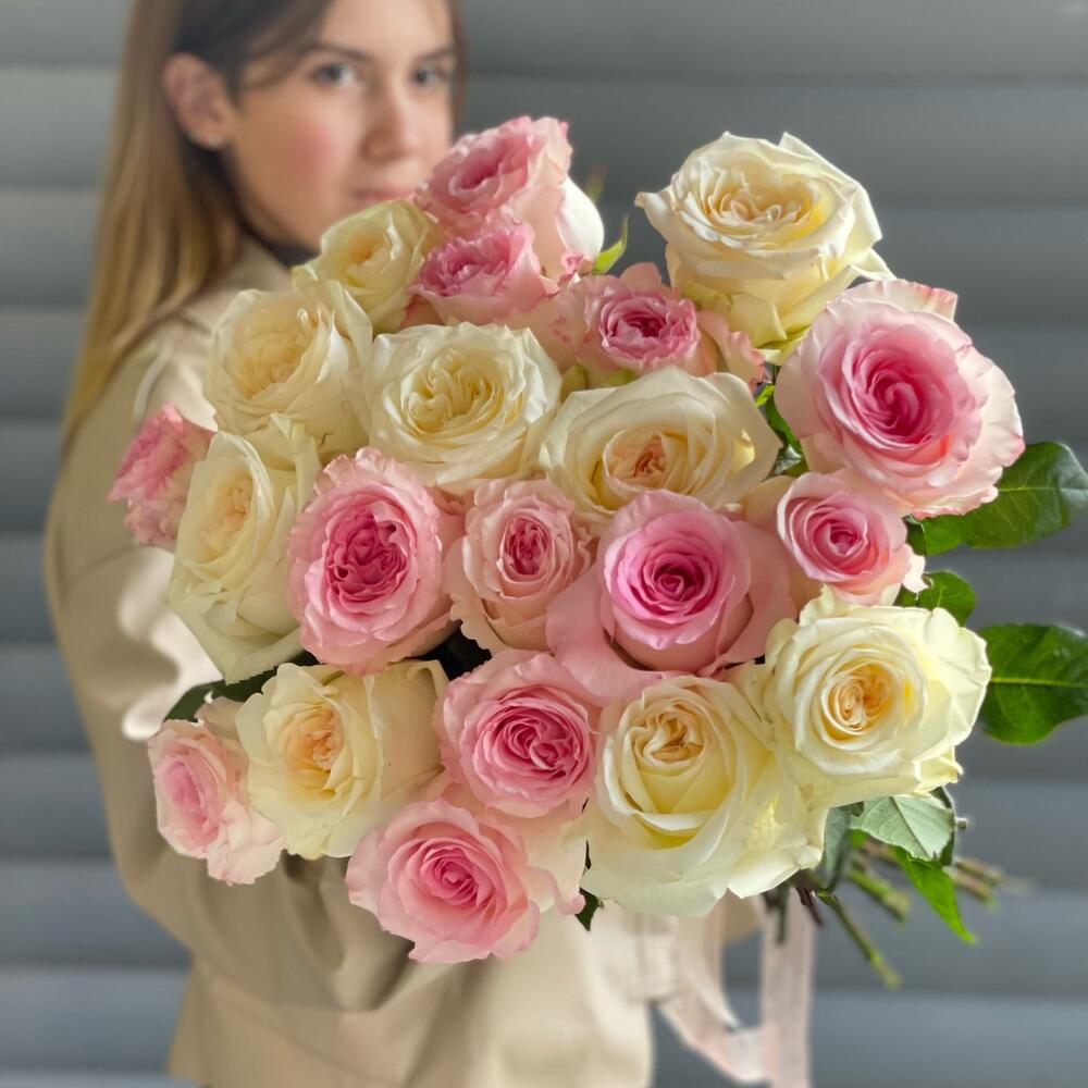 Гвоздики, Кустовые розы, Лизиантусы, Пионовидные розы, Розы