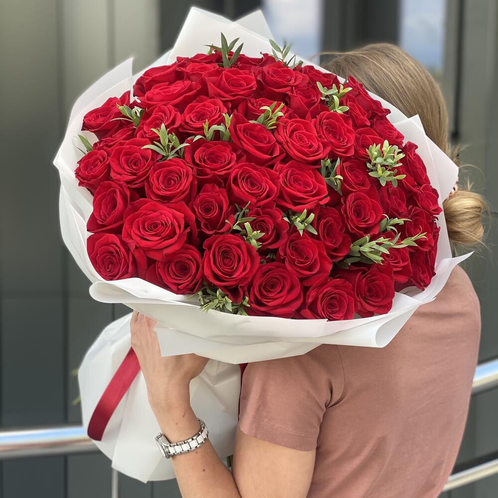 Метки: 14 февраля, 51 роза, Красные розы, от 5000 руб, Роза 50 см