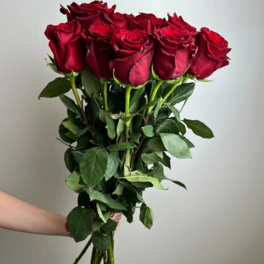 Роза эксплорер 70 см – 9 шт.Лента атласная – 1 шт.