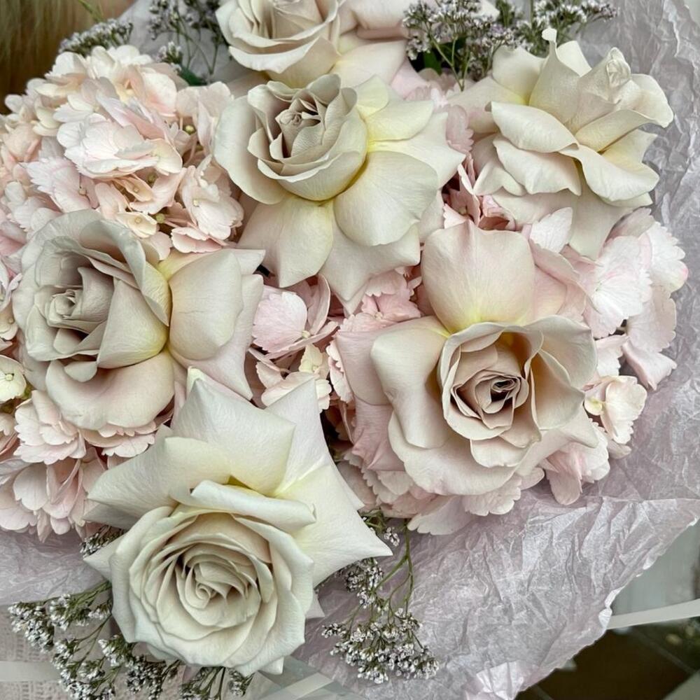“Эвкалиптическая роскошь” гортензия и пионовидная кустовая роза