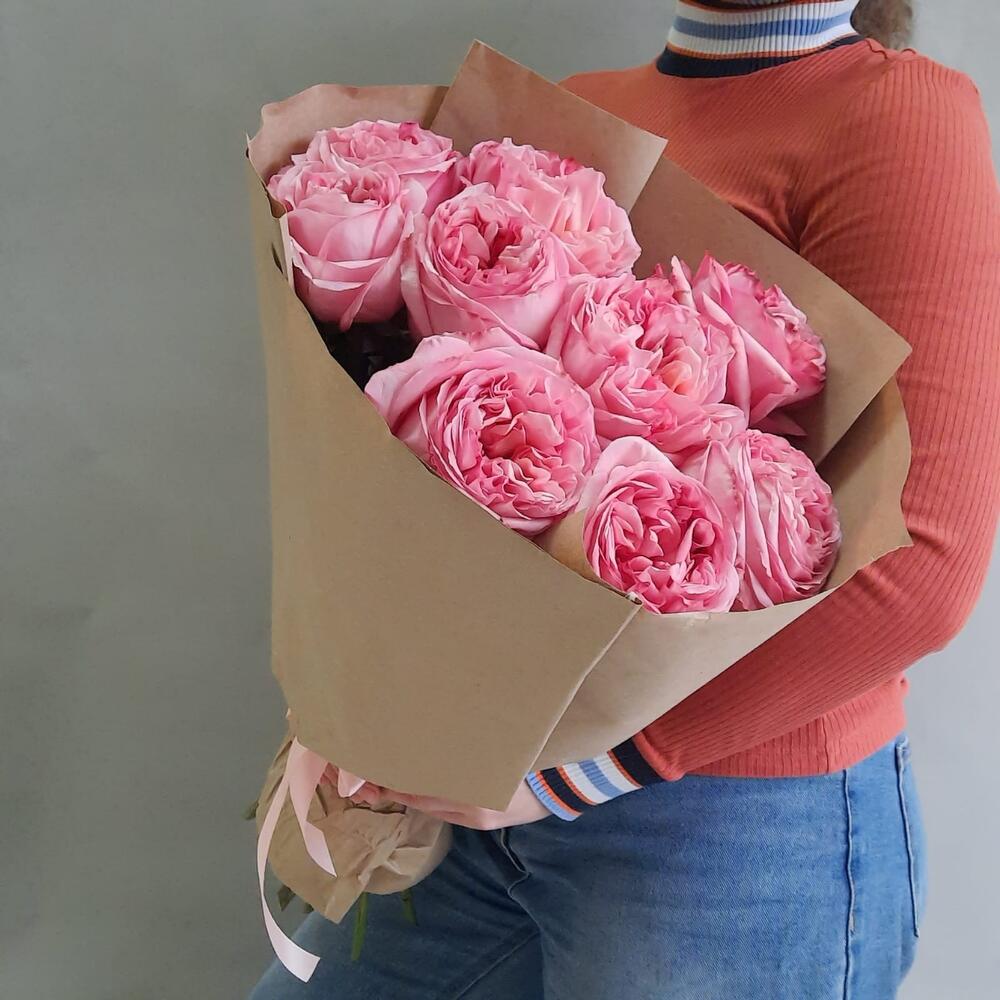 роза пинк экспрешн – 9 шт.Упаковка крафт – 1 шт.Лента атласная – 1 шт.