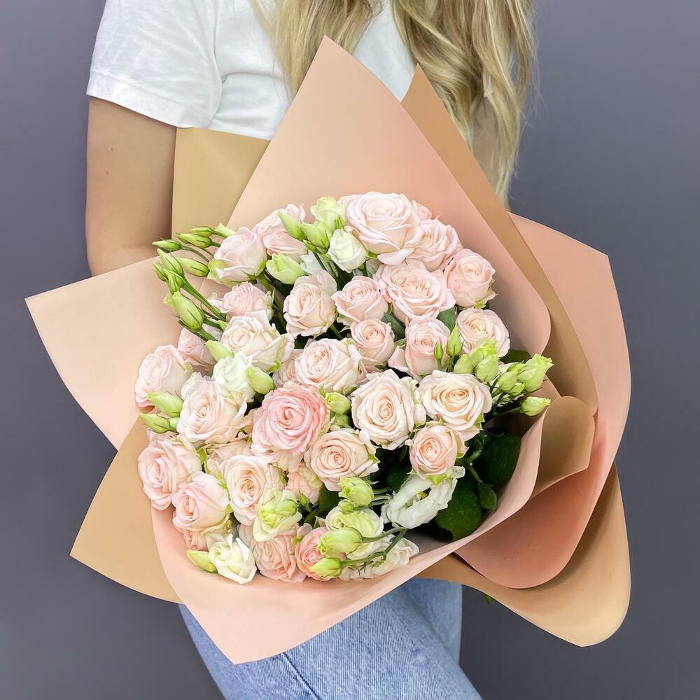 Гвоздики, Кустовые розы, Лизиантусы, Пионовидные розы, Розы