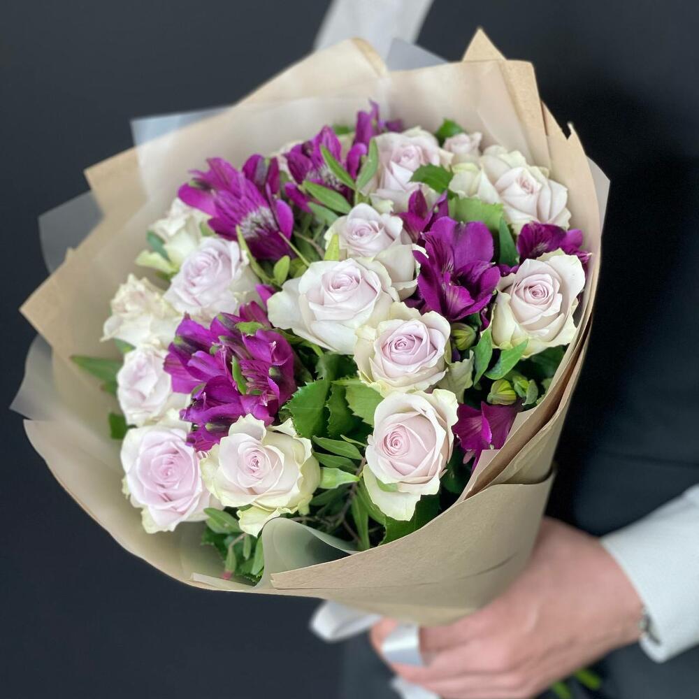 Роза – 15 шт.Альстромерия – 3 шт.Крафт – 3 шт.