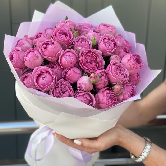 Букет из кустовых пионовидных роз в оформлении!