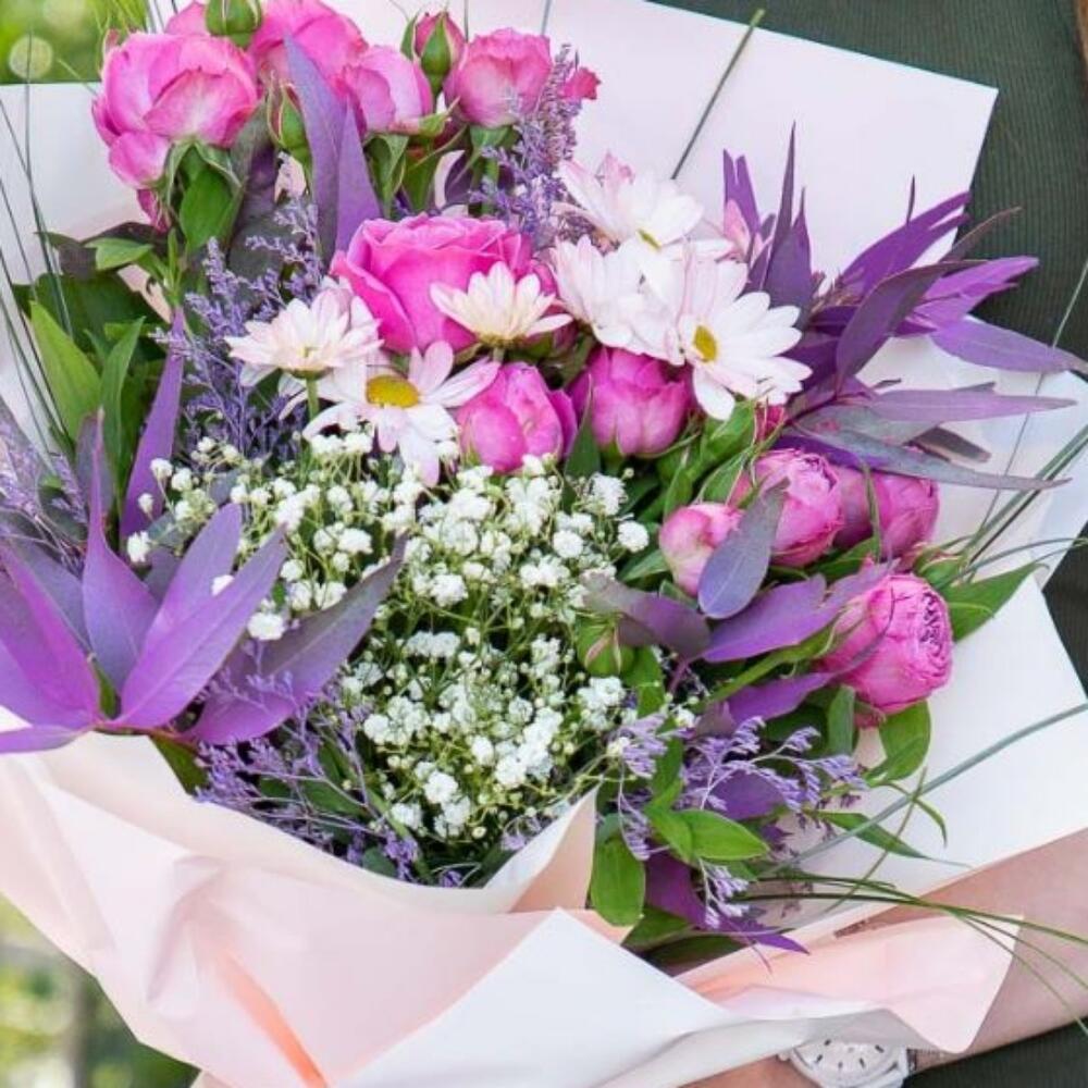 Гвоздики, Кустовые розы, Пионовидные розы, Розы