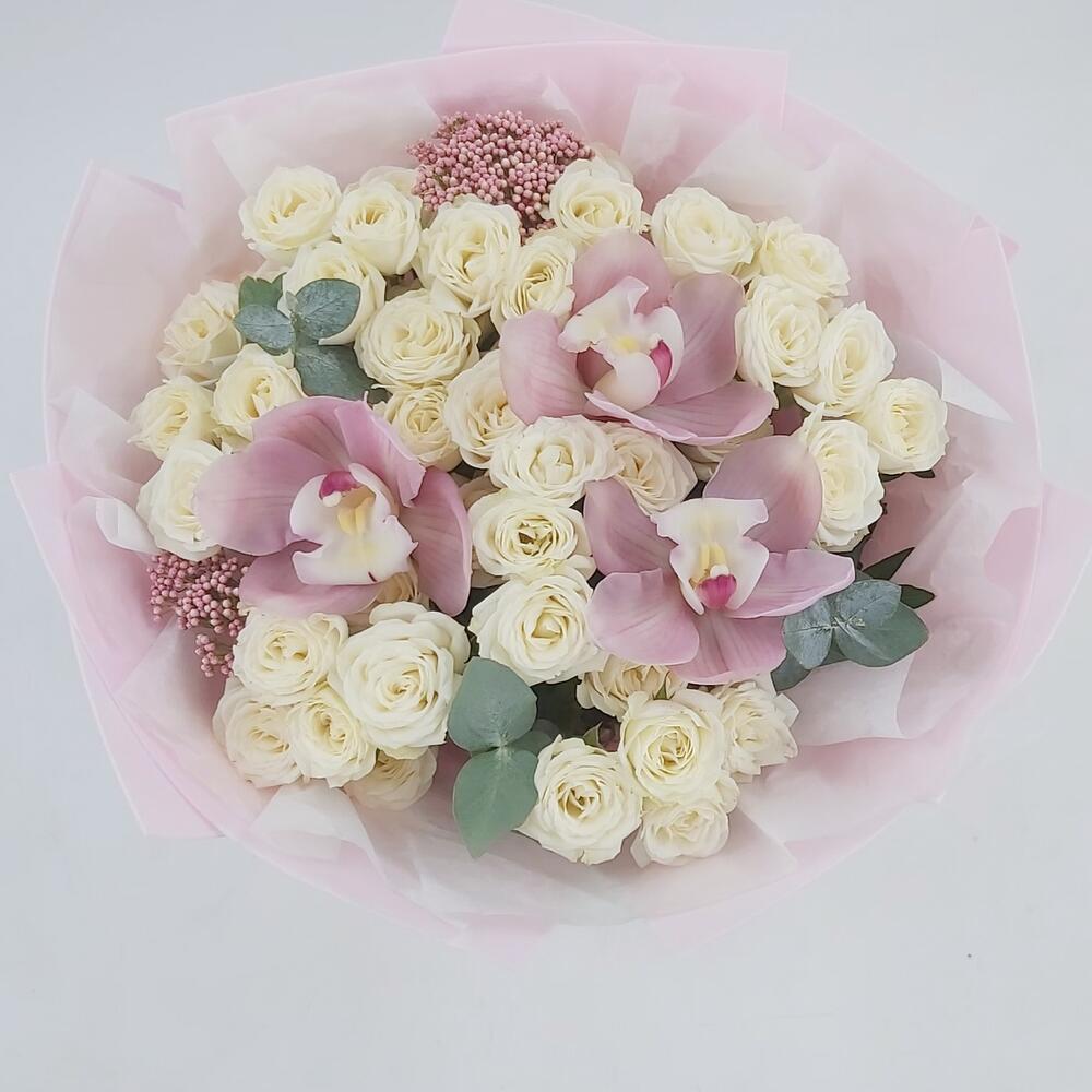 Букет с орхидеями и кустовыми розами Балет