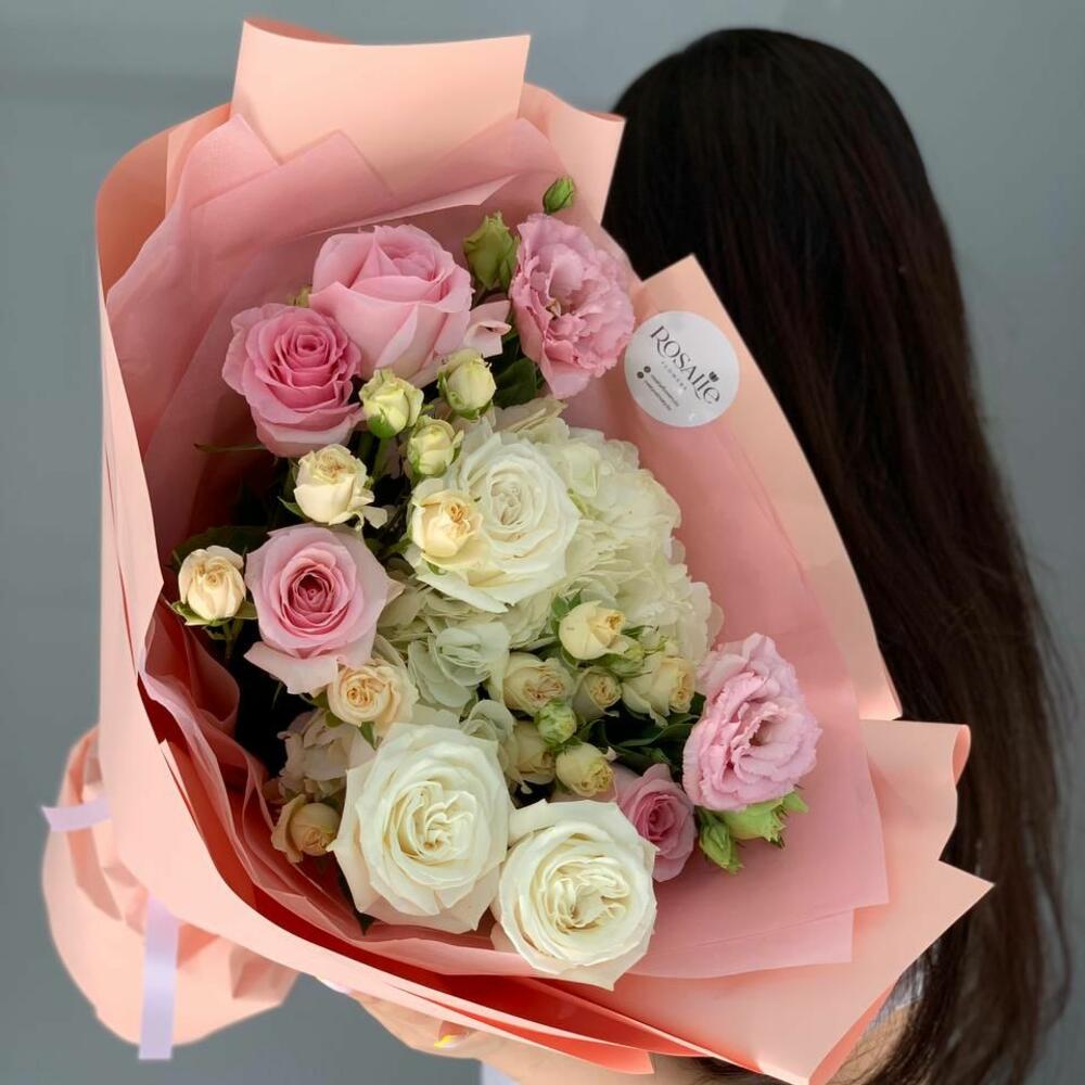 Гвоздики, Лизиантусы, Розы, Тюльпаны