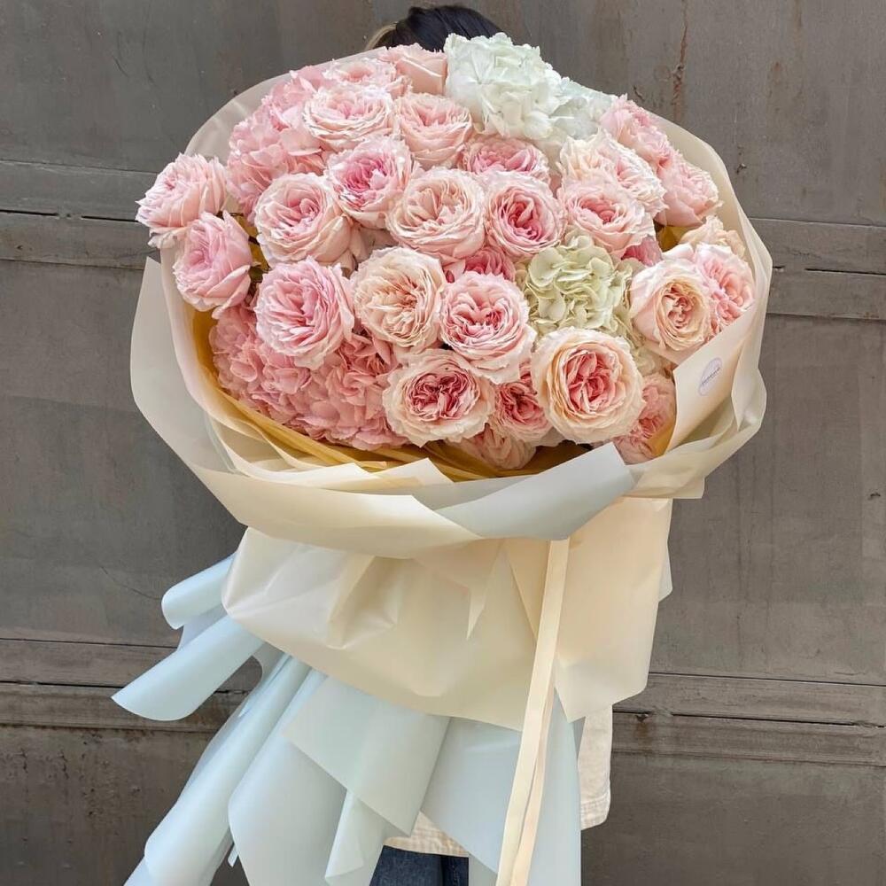 Гвоздики, Кустовые розы, Пионовидные розы, Розы