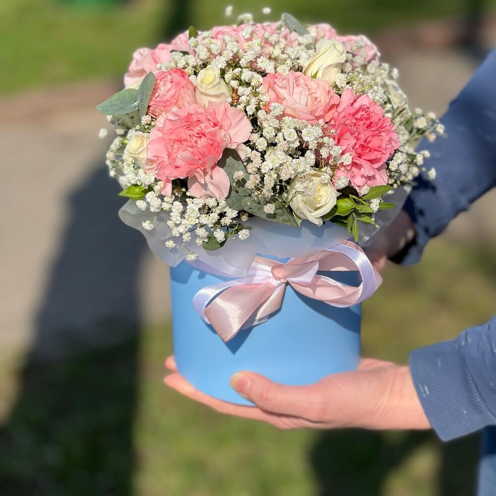 "В твоих глазах": нежная шляпная коробка с французскими розами