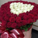 Метки: 101 роза, Белые розы, Красные розы, от 5000 руб, Роза 30 см, Розы в коробке