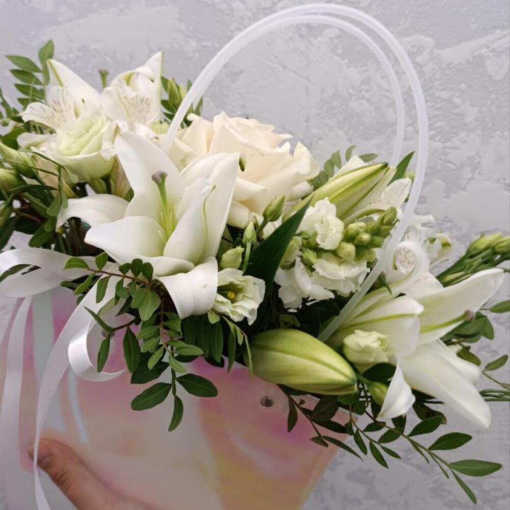 Цветы в коробке «Белая лилия»