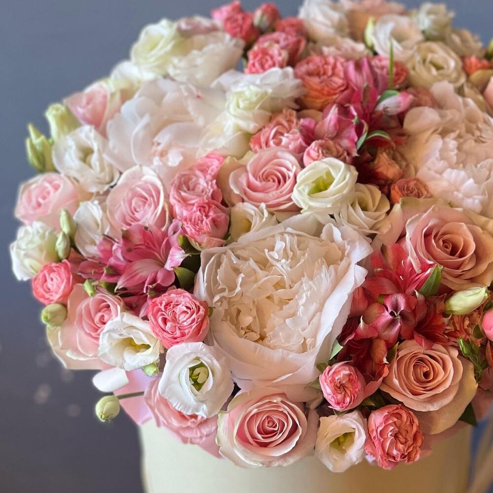 Стильная коробка с пионами и другими цветами , идеальное сочетание оттенков и фактур. Идеальный вариант для тех, кто любит стильное и эффектное.Мы подпишем открытку и вовремя доставим адресату .