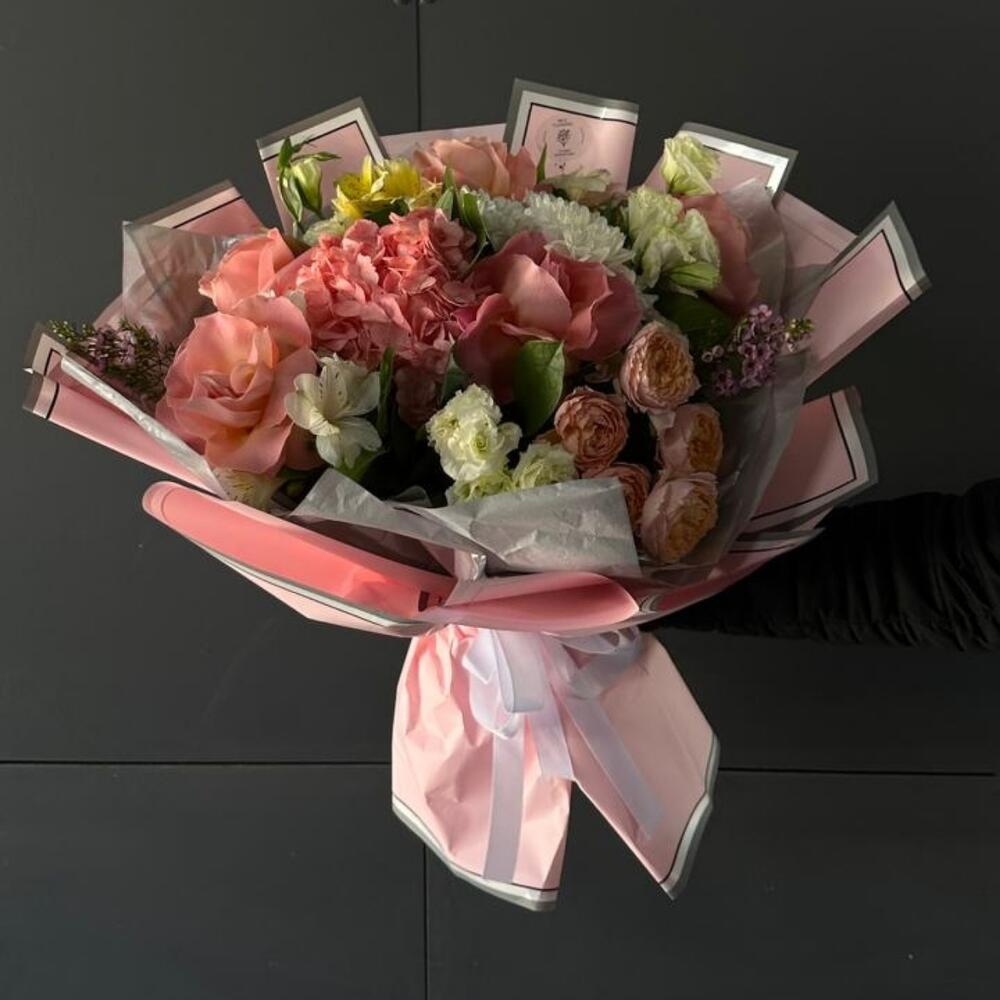 Гвоздики, Кустовые розы, Пионовидные розы, Розы