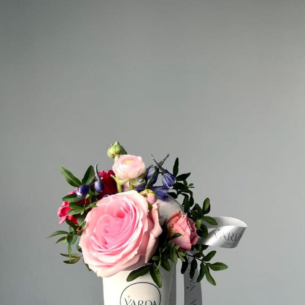 “Атлас☁️” – цветочная композиция с зефиром в деревянном ящике