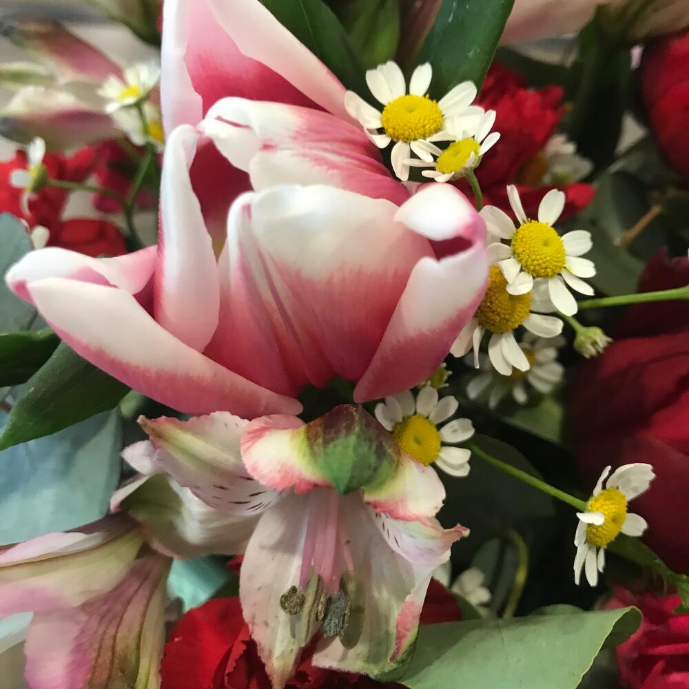 Категорий: Альстромерии, Гвоздики, Лизиантусы, Розы, Ромашки, Тюльпаны