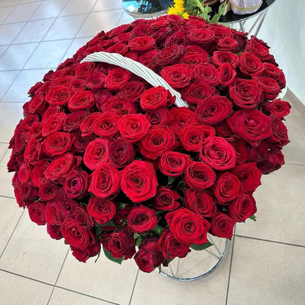 Роза Голландская – 151 шт. Корзина плетеная – 1 шт.