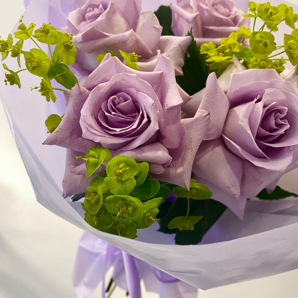 Роза французская – 5 шт.Буплерум – 5 шт.Упаковка дизайнерская – 1 шт.