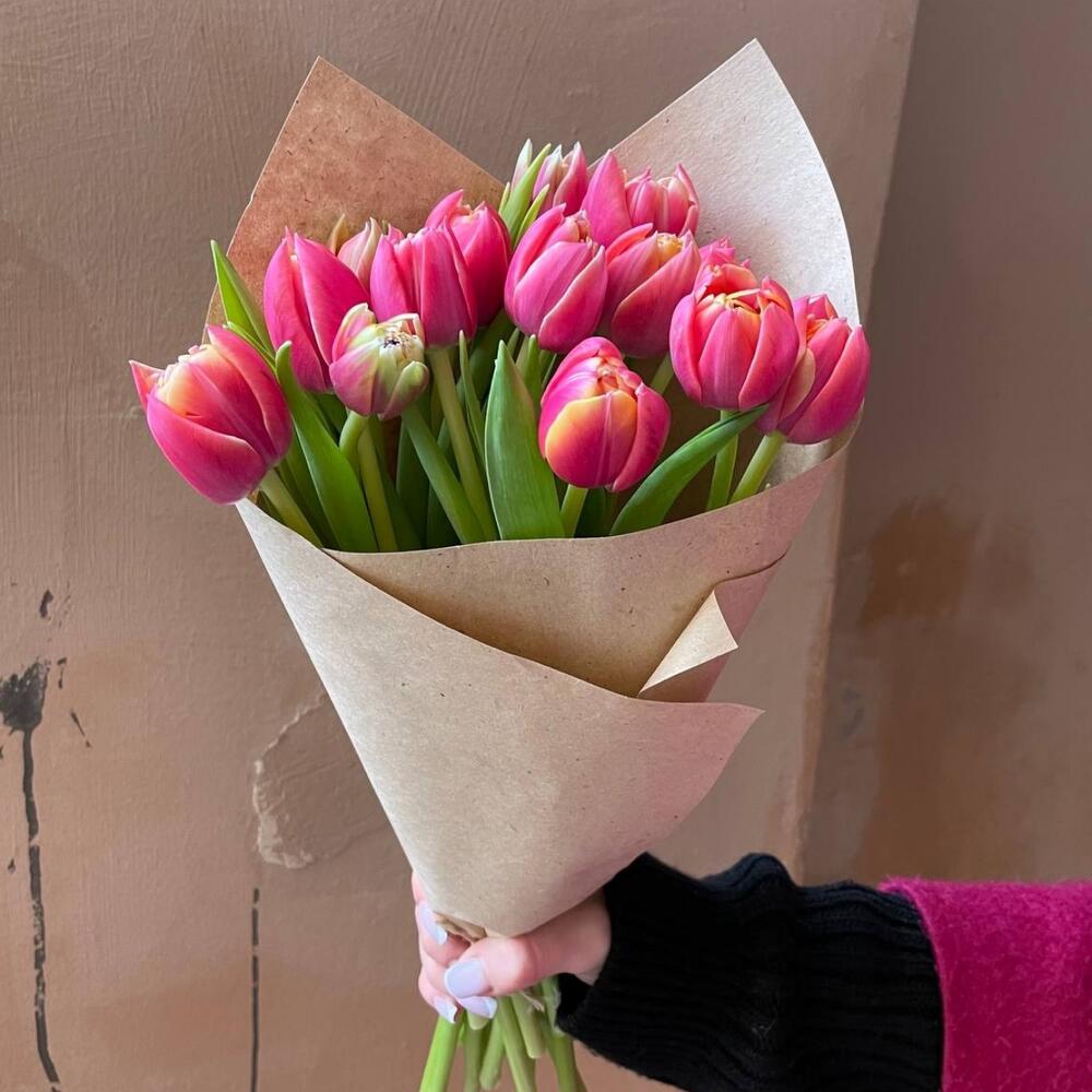 Крафтовая упаковка – 1 шт.Розовый пионовидный тюльпан – 13 шт.